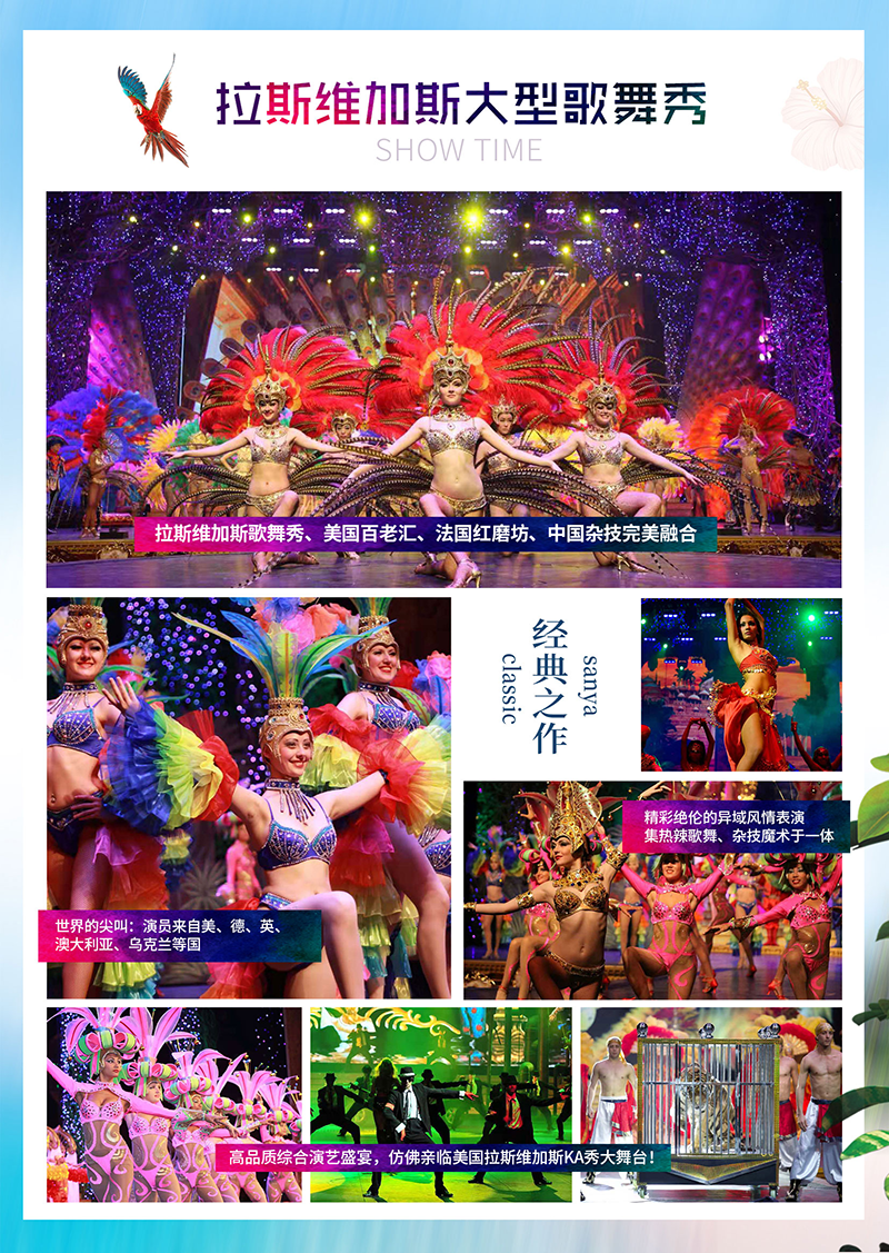 ◎ 觀看【拉斯維加斯大型表演秀】將拉斯維加斯歌舞秀、美國百老匯、法國紅磨坊、中國雜技等融合,邀請的演員來自美、德、英、澳大利亞、烏克蘭、古巴等國,傾情奉獻一臺原汁原味的歌舞盛宴,精彩絕倫的異域風情表演,讓您仿佛親臨美國拉斯維加斯KA秀大舞臺! | ||