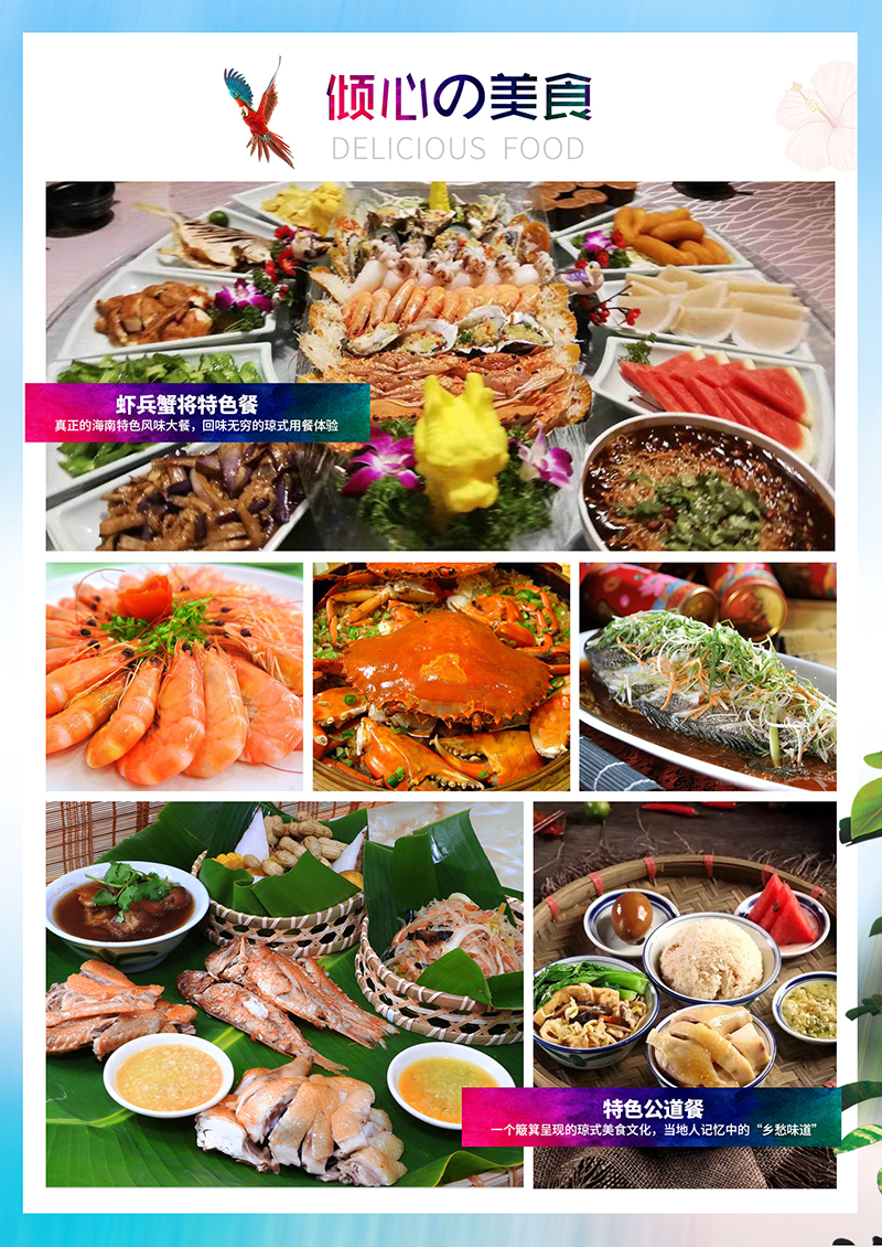 精致餐食:品嘗與眾不同的海南特色美食,贈“蝦兵蟹將”特色餐、特色公道餐;