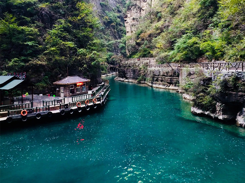 乘水上游船游覽八泉峽景區一線天。一線天總長度達10公里,峰回路轉,彎曲綿延,體驗北方三峽的神韻。下船后可走一走懸空棧道,沿途欣賞瀑布、流泉;觀小八泉、中八泉、大八泉的潺潺流水,充分感受八泉峽景區水路的無限韻味。天上看:然后到達拐彎索道下行,乘坐世界*長拐彎索道,體驗空中游覽觀賞太行山大峽谷美景。云中行:到達玉皇閣,觀賞玉皇云頂美景,徒步行走在云崖棧道,欣賞繞山棧道云中美景??罩杏^:走下云崖棧道,來到天空之城觀光電梯處,體驗縱觀太行山大峽谷美景。*后乘坐返程電瓶車到達景區門口,結束游覽。